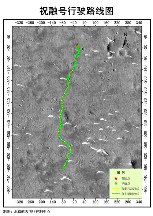 “祝融號”行駛路線圖。國家航天局供圖