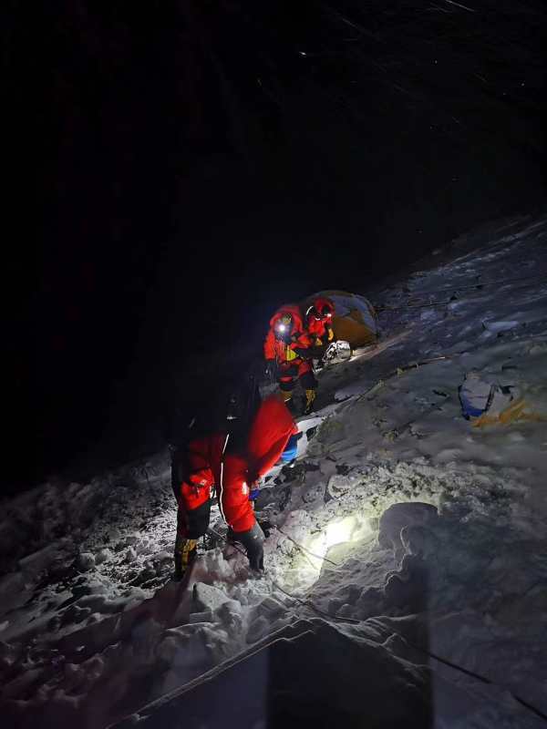 5月25日,隊員從海拔7028米的C1營地出發,行進至海拔7500米的大風口時風力變大。大風迫使隊員們無法正常攀登,只能趴在路線上慢慢前進。5月26日,2020珠峰高程測量登山隊8名“最新”攻頂隊員次落、袁復棟、李富慶、普布頓珠、次仁多吉、次仁平措、次仁羅布、洛桑頓珠從海拔7790米的C2營地出發,順利抵達海拔8300米的突擊營地。