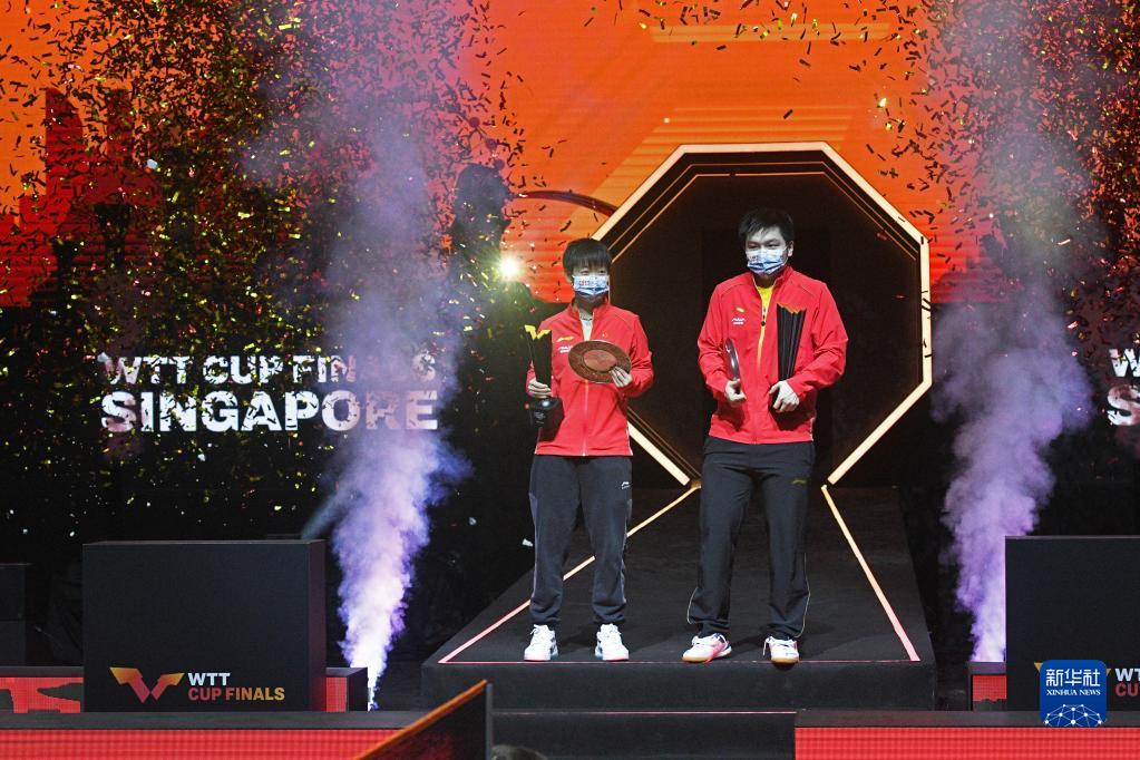 當日,在新加坡舉行的WTT世界杯決賽男單和女單決賽中,中國選手樊振東、孫穎莎戰(zhàn)勝各自對手,獲得男單、女單冠軍。