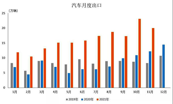 2021年11月,乘用車本月出口17.0萬輛,環(huán)比下降14.1%,同比增長71.2%。2021年1-11月,乘用車出口142.7萬輛,同比增長1.2倍。