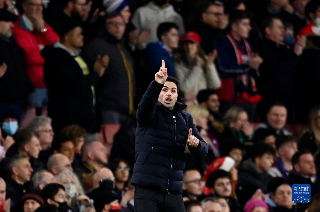 12月15日,阿森納隊主教練阿爾特塔在場邊指揮。