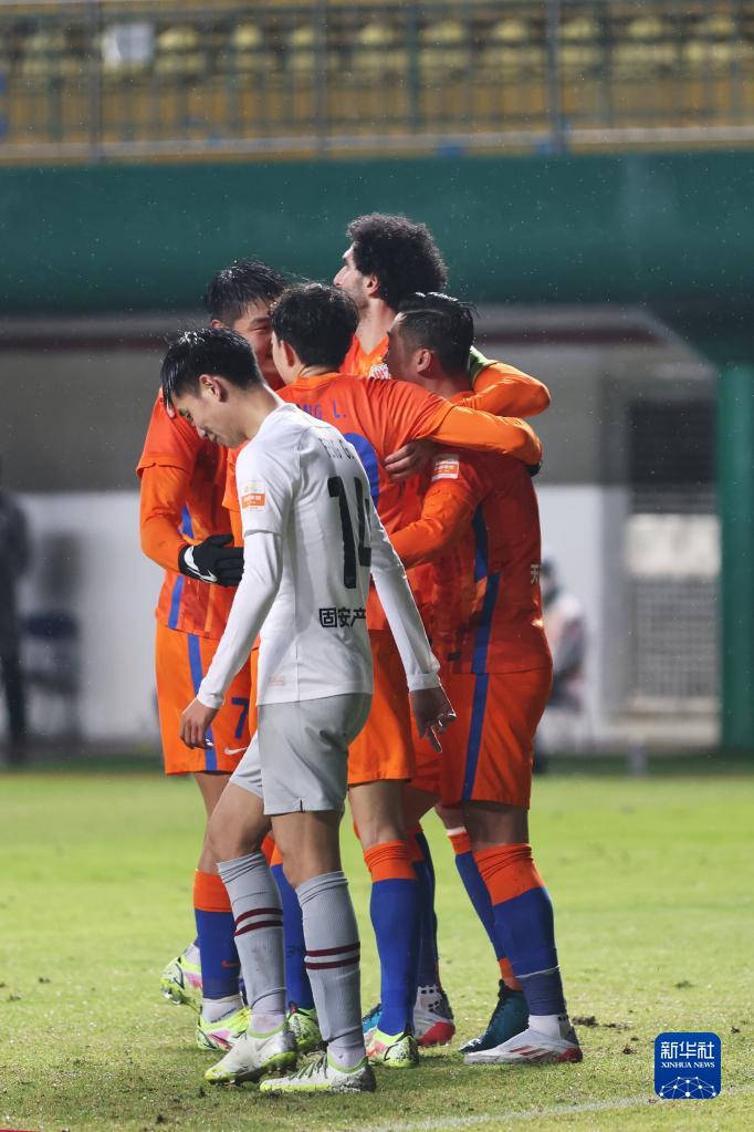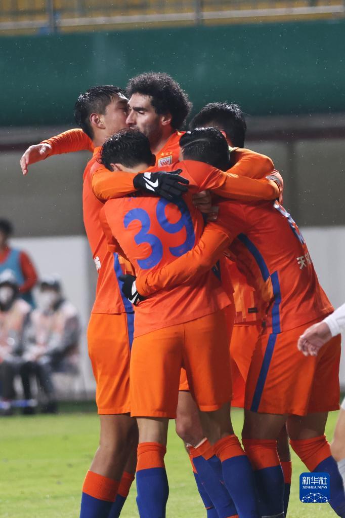 12月26日,山東泰山隊球員在比賽后慶祝。