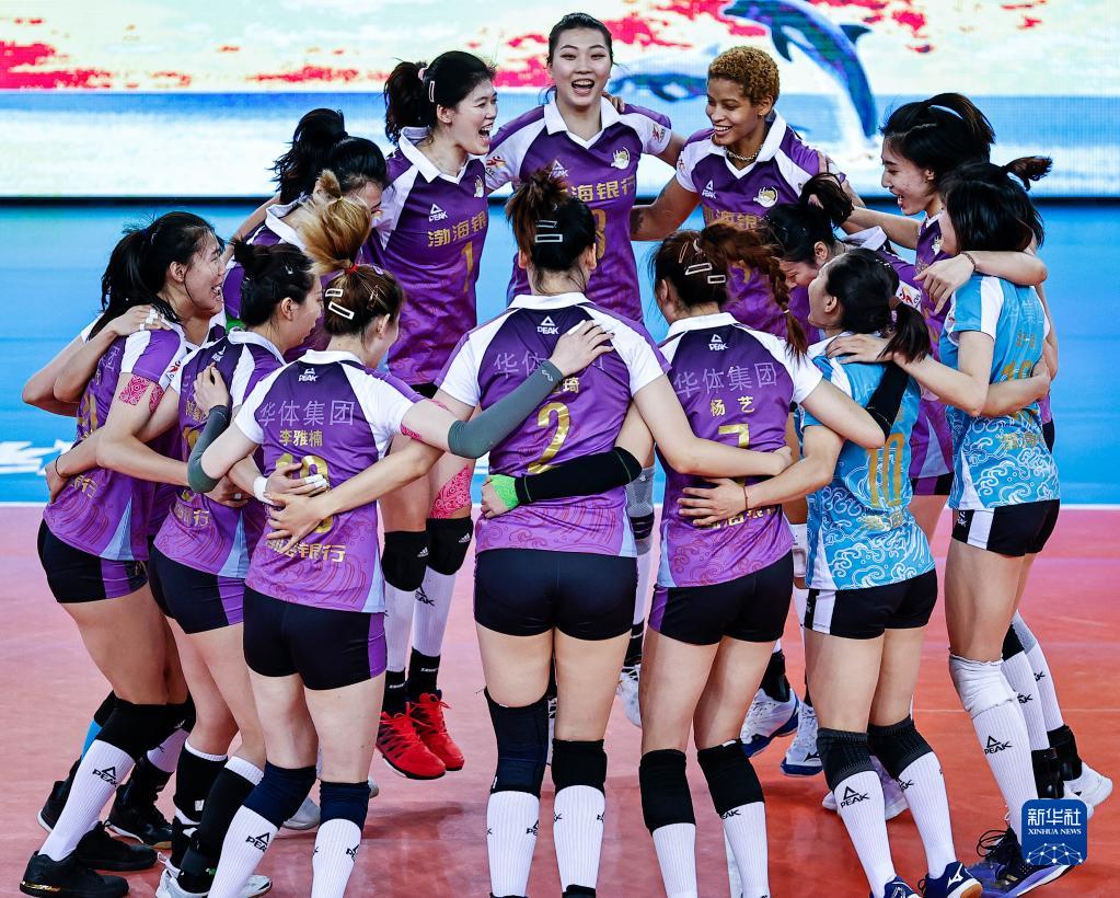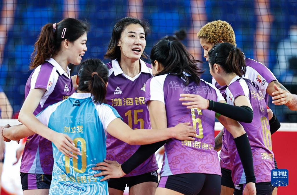 當日,在廣東江門舉行的2021-2022賽季中國女子排球超級聯賽冠軍爭奪戰第二場較量中,天津渤海銀行隊以3比0戰勝江蘇中天鋼鐵隊,從而以2比0的總比分奪得冠軍。