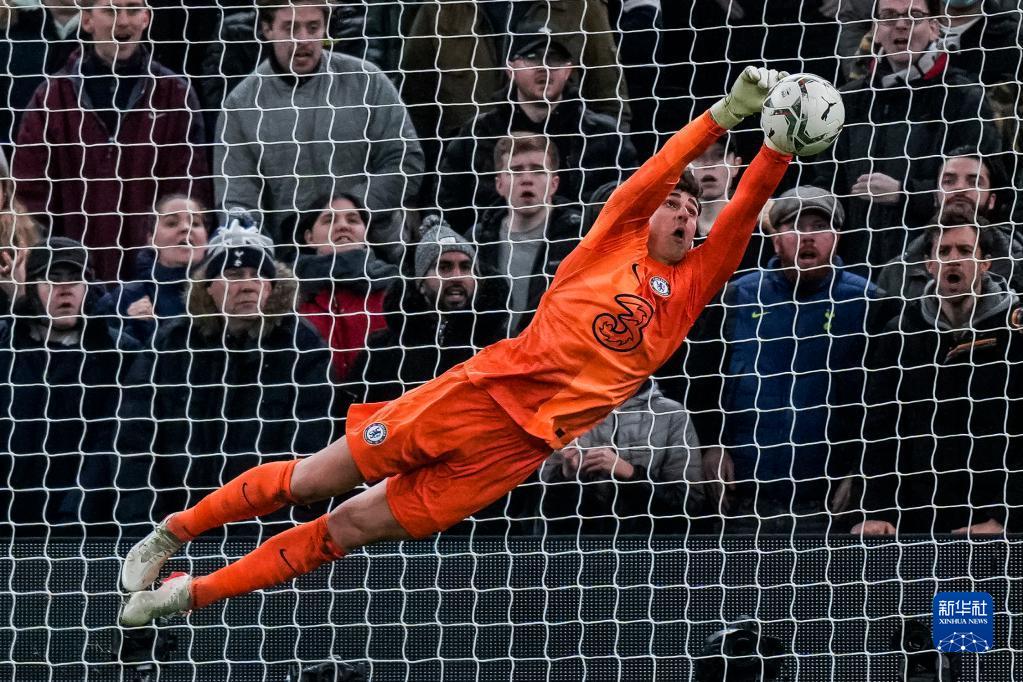 1月12日,切爾西隊守門員凱帕在比賽中撲救。