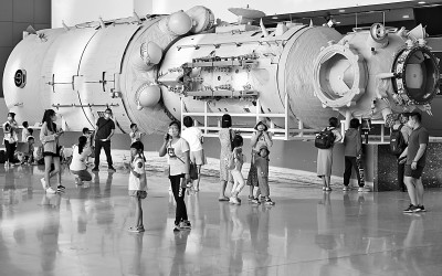 這個夏天,不少家長帶著孩子來到中國科學技術館,參觀天和核心艙結構驗證件實物,了解中國空間站相關知識。新華社發