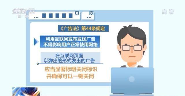 其中《廣告法》第44條就規定,利用互聯網發布發送廣告,不得影響用戶正常使用網絡,在互聯網頁面以彈出的形式發出的廣告,應當顯著標明關閉標識,并確保可以一鍵關閉。