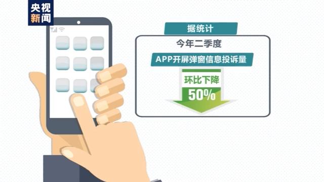 據統計,今年二季度App開屏彈窗信息投訴量環比下降50%;用戶使用量排名前100位的App,開屏信息難以關閉問題發現率由69%下降到1%,而利用彈窗誤導用戶點擊跳轉問題的發現率,由90%下降至12%。