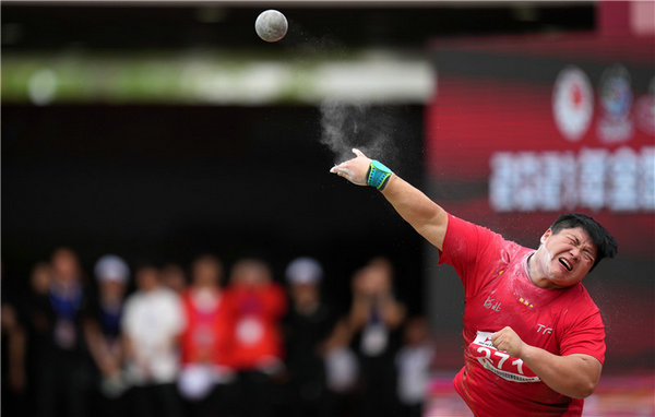 6月13日,鞏立姣在2021年全國田徑冠軍賽暨奧運會選拔賽女子鉛球決賽中奪冠。新華社記者 李一博 攝
