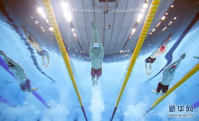 7月30日,汪順(中)在比賽中。