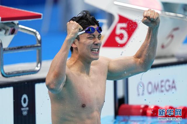 7月30日,汪順在奪冠后慶祝。