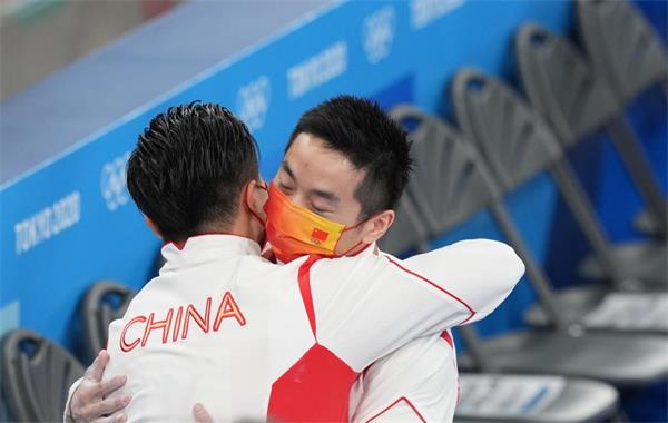 8月2日,尤浩(右)和隊友劉洋在賽后擁抱。新華社記者劉大偉攝